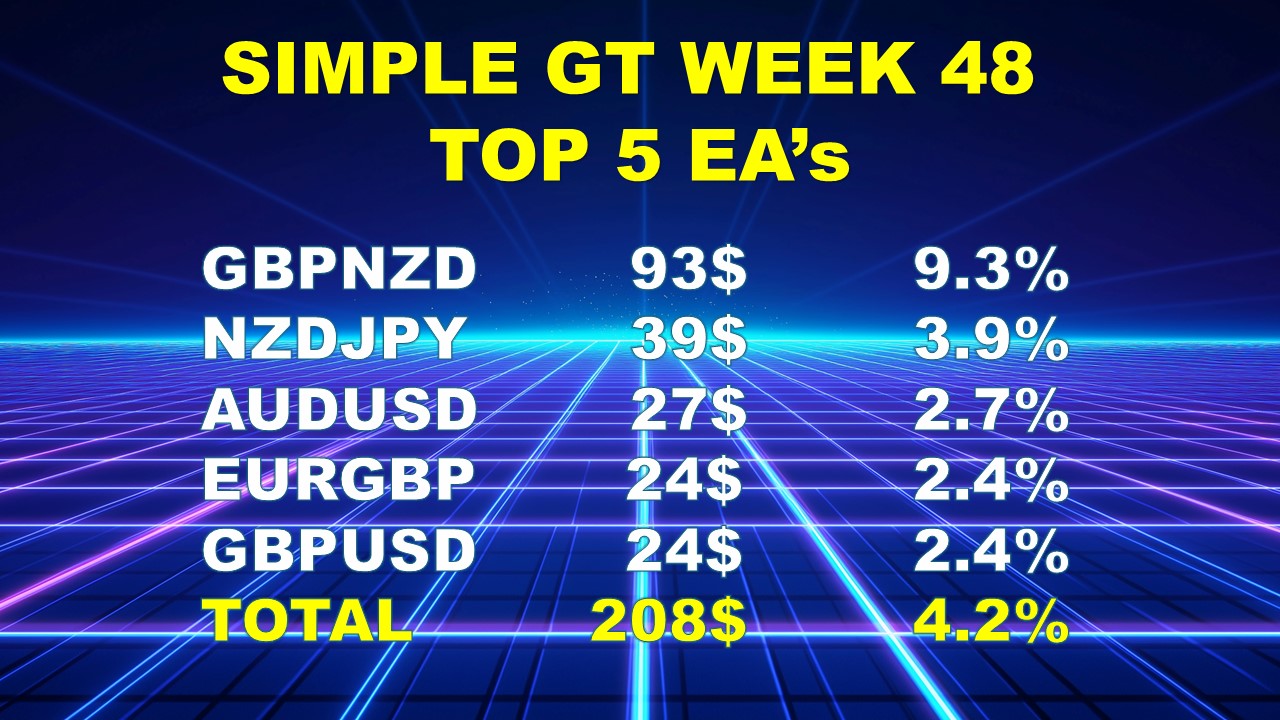 The top 5 traded currencies of each week will be shared here and can also be verified through the FX Blue links provided below for confirmation. The posted results are presented as percentages for a $1,000 account.