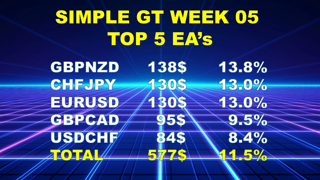 The top 5 traded currencies of each week will be shared here and can also be verified through the FX Blue links provided below for confirmation. The posted results are presented as percentages for a $1,000 account.